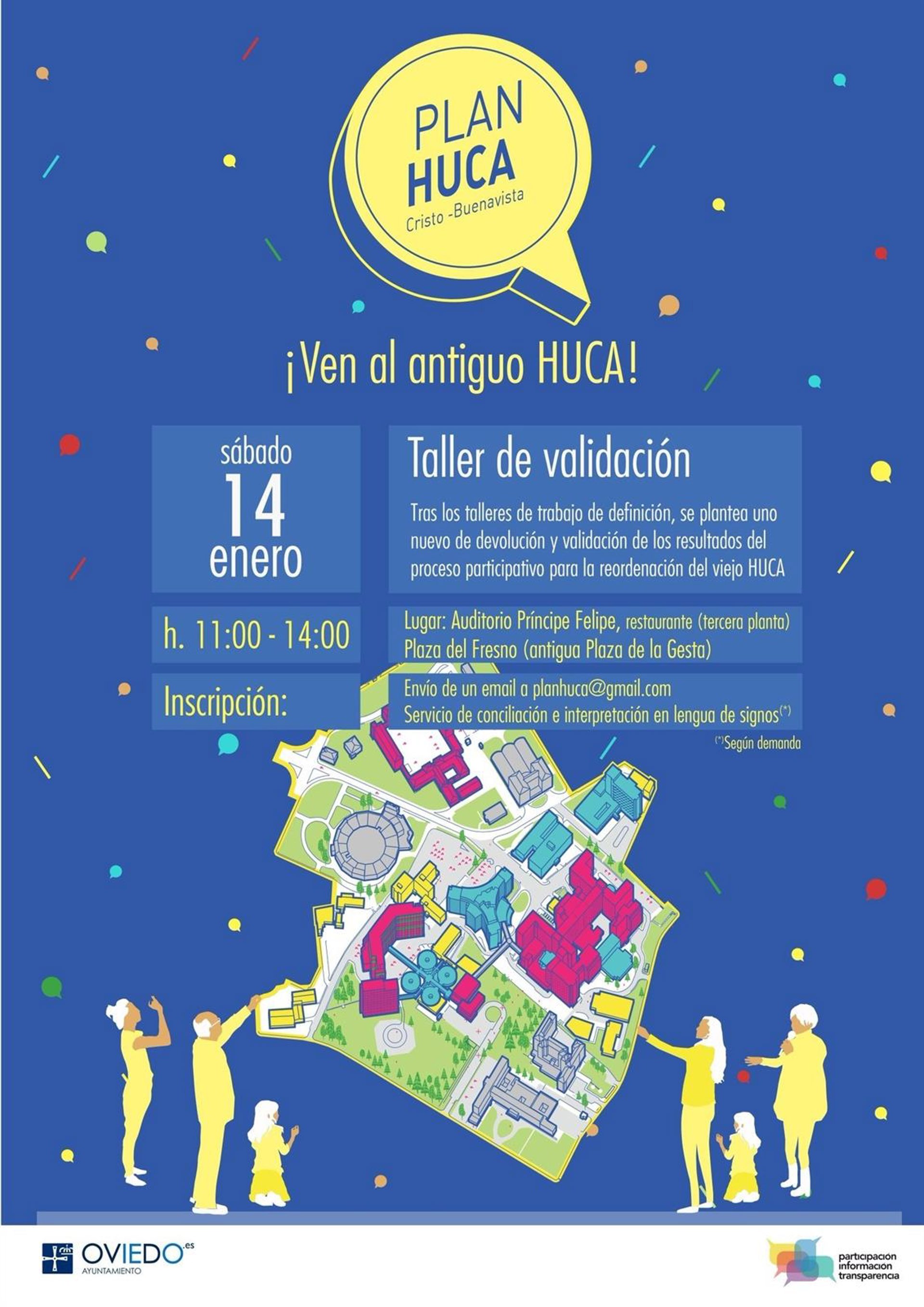 El proceso participativo 'Plan HUCA' sobre los terrenos del antiguo centro hospitalario en El Cristo celebra este sábado un taller para trabajar en los resultados provisionales que está arrojando el proyecto. Será en el Auditorio Príncipe Felipe de Oviedo a partir de las 11.00 horas.