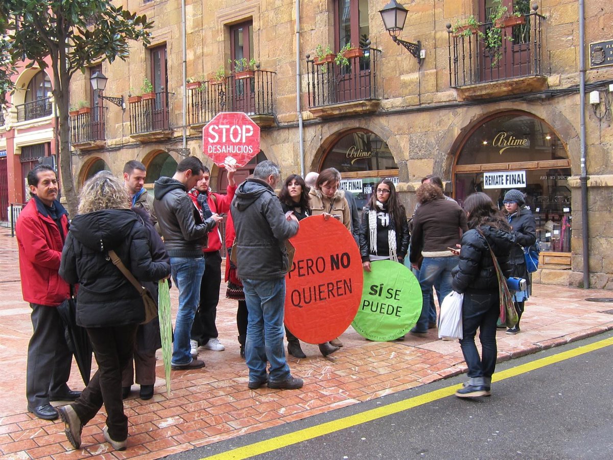 Los concentrados portaban pancartas y carteles en contra de los desahucios y con lemas como 'Si se puede pero no quieren'.