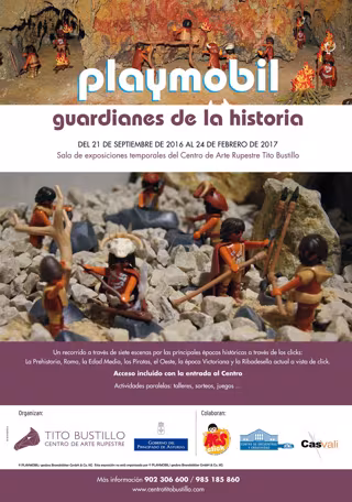 La exposición tendrá acceso gratuito con la entrada al Centro de Arte Rupestre, se podrá visitar todos los días de apertura hasta el 24 de febrero de 2017. La muestra cuenta con la colaboración de la Asociación Española de Coleccionistas de Playmobil (Aesclick), de Playmobil Ibérica, del Centro de Encuentros y Creatividad y de Casvali Servicios Integrales.