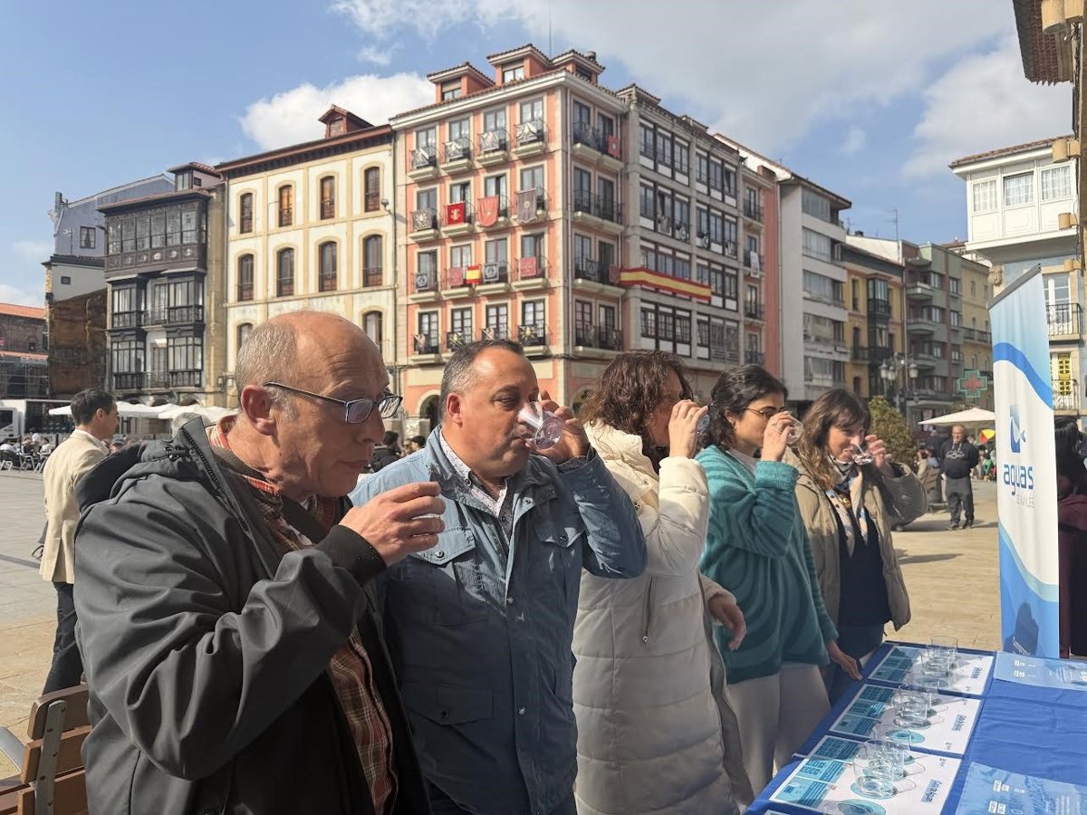 Con motivo de la celebración del Día Mundial del Agua, los soportales de la Casa Consistorial, en la Plaza de España, han acogido este lunes una cata de aguas.