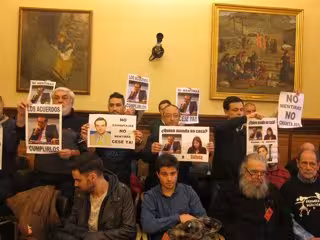 Este punto ha tenido su contestación en el Pleno, donde representantes sindicales han mostrado carteles al inicio del mismo en protesta por el "incumplimiento" del Gobierno local de hacer efectivo el pago este mes de marzo. En los carteles, con fotos de la alcaldesa, Carmen Moriyón, la edil de Hacienda, Ana Braña, y el director general de Servicios, Vicente Hoyos, se podían leer mensajes como: 'No chantajes. No mentiras. Cese ya', referido a este último, o '¿Quién manda en casa? Colás o Colasa'.