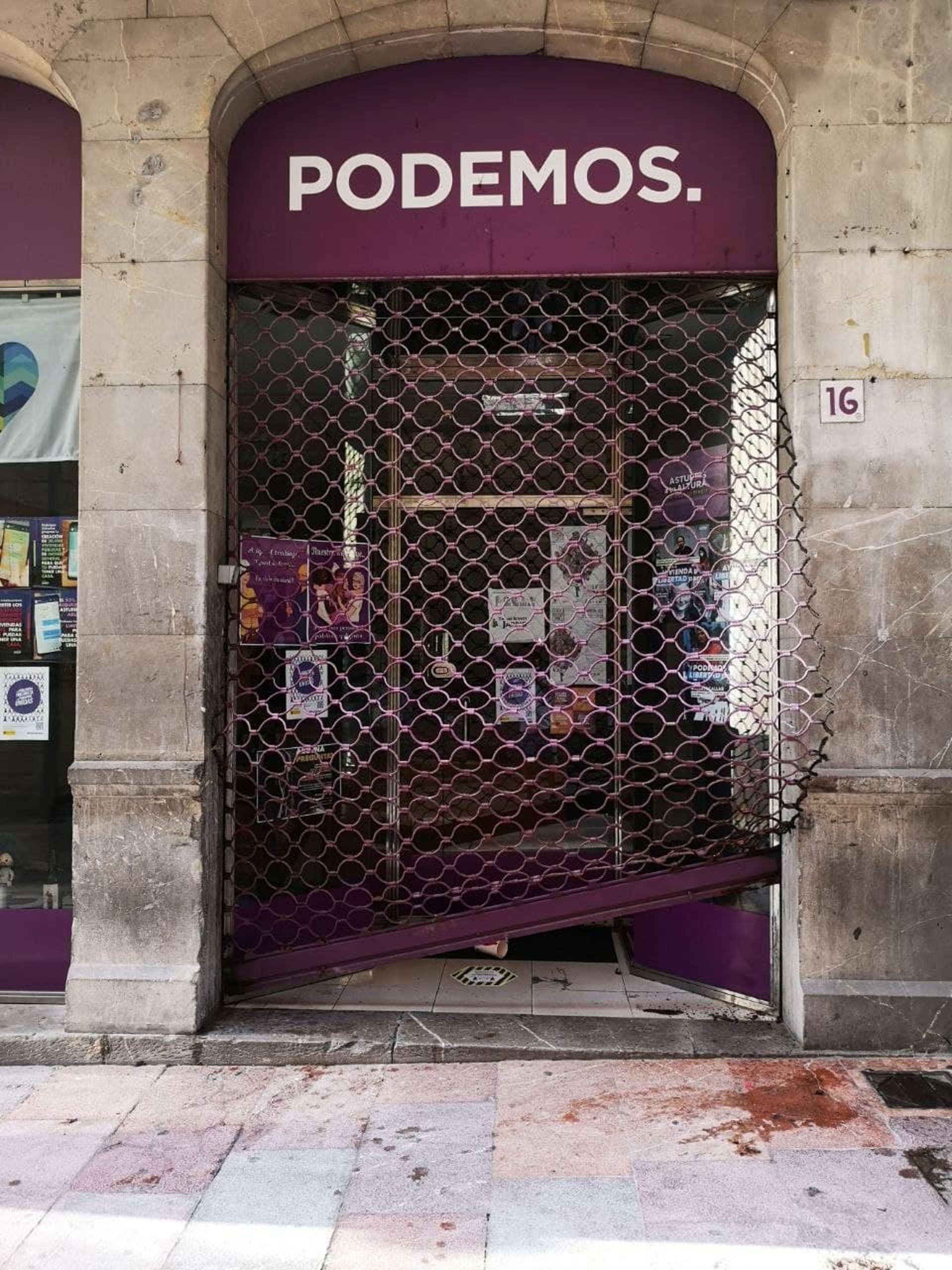 Podemos Asturias ha denunciado este jueves en la Comisaría Nacional de Policía destrozos en la verja de la sede regional de la calle Jesús en Oviedo. "Una o varias personas reventaron con violencia la verja de la entrada en la madrugada del 8 al 9 de septiembre, tras del Día de Asturias", advierten en un comunicado.