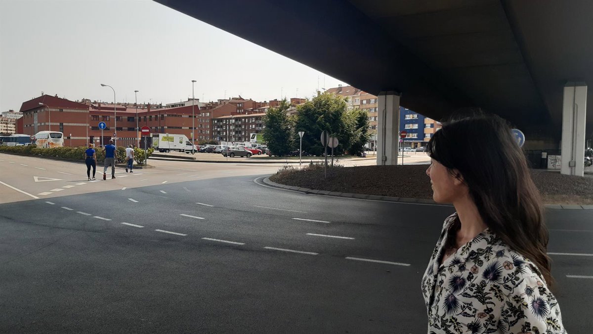 La portavoz de Podemos-Equo Xixón, Laura Tuero, junto a la rotonda de Sanz Crespo, en Gijón - PODEMOS-EQUO XIXÓN
