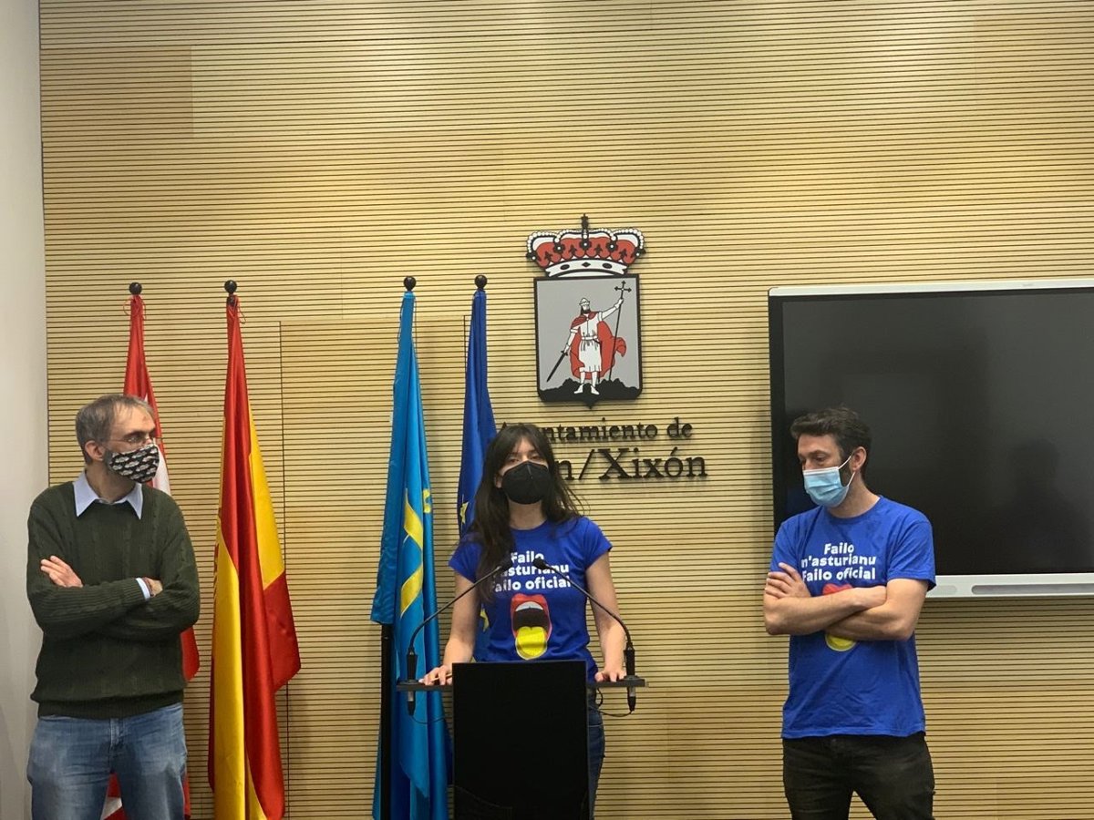 Archivo - La portavoz de Podemos-Equo Xixón, Laura Tuero, junto a otros representantes del grupo municipal - PODEMOS-EQUO XIXÓN - Archivo