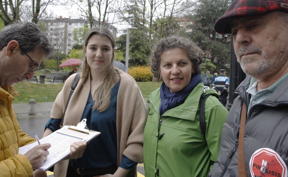 Archivo - La portavoz de Podemos en el Ayuntamiento de Gijón, Olaya Suárez (a la izda), y la portavoz de Podemos Xixónl, Alejandra Tejón, durante una campaña de recogida de firmas contra la planta de pirolisis (Archivo) - PODEMOS XIXÓN - Archivo
