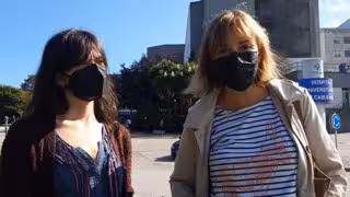 La portavoz de Podemos-Equo Xixón en el Ayuntamiento gijonés, Laura Tuero, y la responsable de Salud de Podemos Asturies, Covadonga Tomé, a las puertas del hospital de Cabueñes, en Gijón - PODEMOS-EQUO XIXON