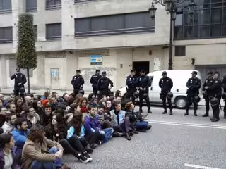 Pasadas las 08.30 horas, los concentrados se sentaron en la carretera en el cruce de General Elorza con avenida de Pumarín, y los agentes tuvieron que sacarlos de la calzada con forcejeo. Entre ellos se encontraba el portavoz de IU en el Ayuntamiento de Oviedo, Roberto Sánchez Ramos.