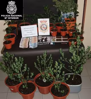Además en dos de las habitaciones de la vivienda los investigadores hallaron sendas plantaciones de marihuana, con todo lo necesario para el cultivo, cuidado y preparación de esta droga, estando claramente separadas y delimitadas las fases del cultivo.
