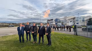 Álvaro Marcé, director de desarrollo de distribución de gas de Nortegás; Alejandrio Villa y Manuel Pergentino Martínez, concejales del Ayuntamiento de Siero; Isaac Pola, viceconsejero de Industria y Transición Justa y Juan Villar, CEO Nortegás. - PRINCIPADO