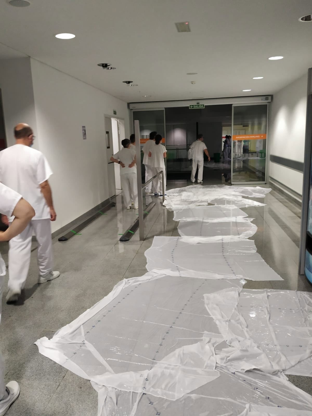 Así lo ha indicado en un apunte en Twitter recogido por Europa Press, donde se puede ver un video de las goteras en el hospital ovetense y sábanas en el suelo para intentar evitar la propagación del agua.