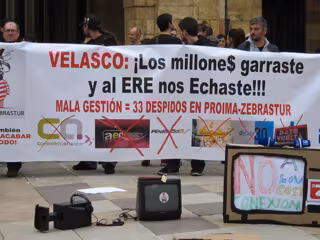 Las protestas debido al ERE que afectó a 33 trabajadores de la productora han sido repetidas durante esta jornada de huelga. "Esto ha sido idea de los trabajadores y del Comité de Empresa. Convocamos una asamblea la semana pasada para realizar la protesta, que afecta a la mitad de la plantilla y la idea era hacer huelga y movilizaciones, delante del centro de trabajo y del Ayuntamiento para conseguir el apoyo tanto de los grupos municipales como del alcalde y poner una solución al conflicto", ha explicado Silvo.