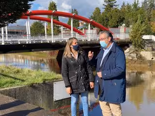 Los diputados del PP de Asturias Pablo González y Cristina Vega, durante su visita al río Piles - PP ASTURIAS