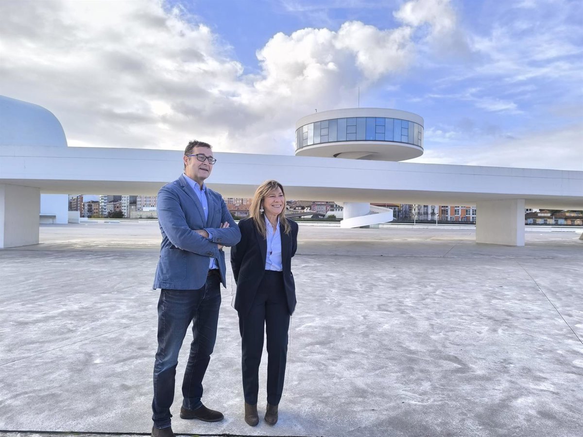 El diputado del PP en la JGPA José Luis Costillas, y la diputada nacional Esther Llamazares, en el entorno del Centro Niemeyer. - PP DE ASTURIAS