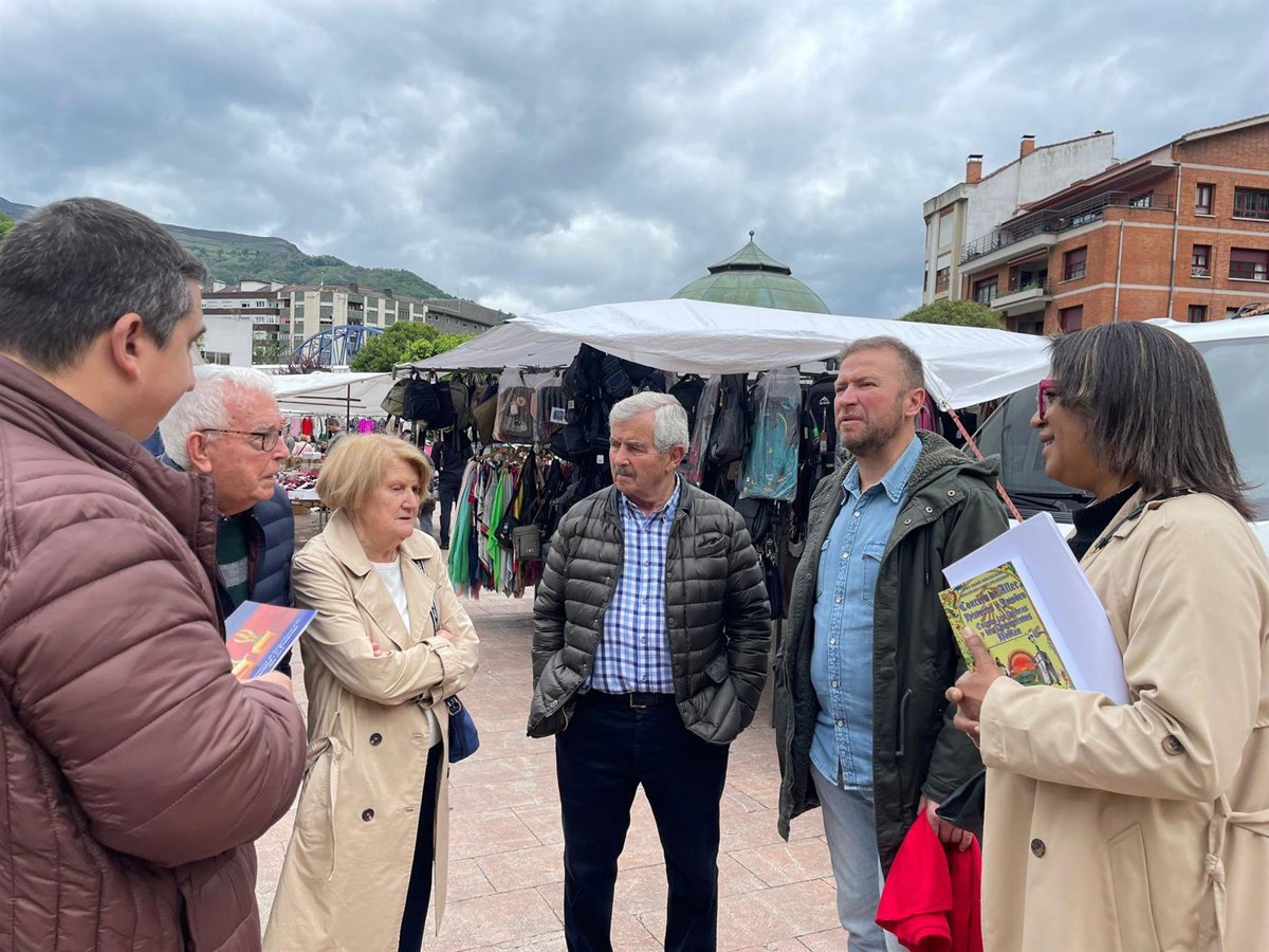 La diputada del PP Sandra Camino durante su visita al mercadillo de Moreda con miembros de la junta local del PP de Aller - PP DE ASTURIAS