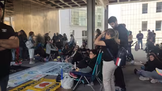 Docentes en la protesta ante el Easmu. - EUROPA PRESS