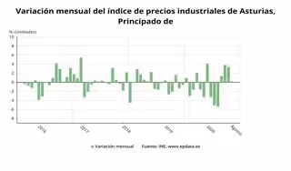 Variación mensual del índice de precios industriales en Asturias hasta agosto. - EPDATA