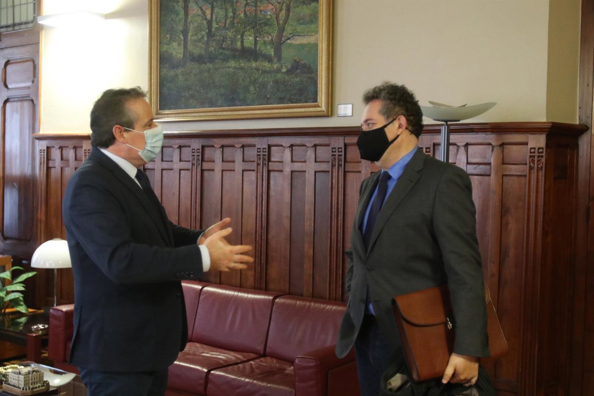El presidente de la Junta General del Principado, Marcelino Marcos Líndez, ha recibido esta mañana al director gerente de la Fundación Padre Vinjoy, Adolfo Rivas.