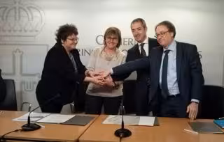La consejera de Servicios y Derechos Sociales del Principado, Pilar Varela, ha firmado este martes un acuerdo con el director territorial de Caixabank en Castilla y León y Asturias, José Manuel Bilbao, y el director corporativo del Área Social de la Obra Social 'la Caixa', Marc Simón, para reforzar el envejecimiento activo entre 22.000 mayores a través del programa de Personas Mayores que se desarrolla en 22 centros.