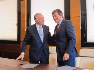 El presidente del Principado, Javier Fernández, y el presidente de la Fundación Bancaria La Caixa, Isidro Fainé, han firmado este miércoles un acuerdo de colaboración en materia de acción social y cultural dotado con cuatro millones de euros.