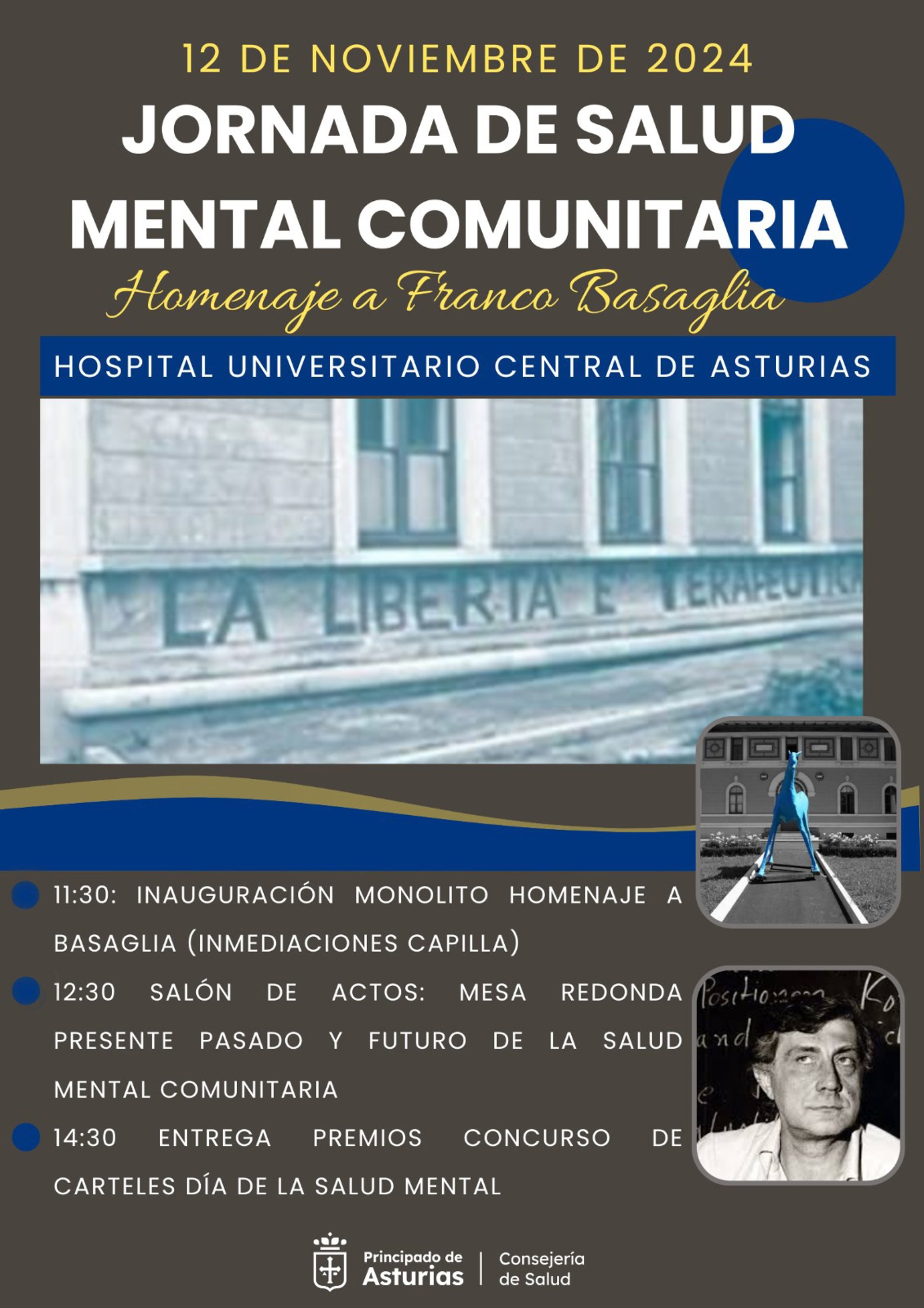 La jornada finalizará con la entrega de los premios del concurso de carteles centrado en la figura del psiquiatra italiano, convocado por la Consejería de Salud y el Servicio de Salud del Principado (Sespa) con motivo del Día Mundial de la Salud Mental. Los trabajos finalistas se expondrán en los pasillos de acceso al salón de actos del HUCA.