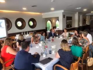 Desayuno de trabajo entre la consejera de Derechos Sociales y Bienestar del Principado, Melania Álvarez, y representantes de la Asociación de Empresas Sociosanitarias del Principado de Asturias, en el Real Club Astur de Regatas, en Gijón - PRINCIPADO DE ASTURIAS