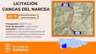 La Consejería de Fomento, Cooperación Local y Prevención de Incendios del Gobierno asturiano ha licitado las obras de mejora de la AS-15 (Cornellana-Puerto de Cerredo), conocida como corredor del Narcea, en el tramo entre La Venta y El Pueblu, en el concejo de Cangas del Narcea. La inversión destinada a estos trabajos alcanza los 518.827 euros y el plazo de ejecución es de cuatro meses.