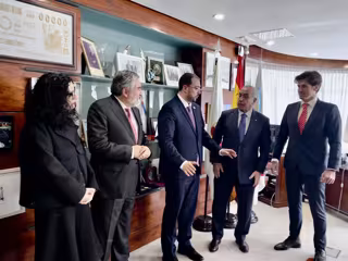 La viceconsejera de Cultura, Vanessa Gutiérrez, el presidente del CSD, José Manuel Rodríguez Uribes; el presidente del Principado Adrián Barbón; el presidente del COE, Alejandro Blanco y el presidente de la federación Piragüismo, Javier Hernanz. - GOBIERNO DE ASTURIAS