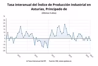 El Índice de Producción Industrial del Principado de Asturias ha descendido un 2,9 por ciento en abril, en comparación con el mismo mes del pasado año, según ha informado este miércoles el Instituto Nacional de Estadística (INE).