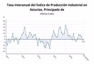 El Índice General de Producción Industrial (IPI) aumentó una media del 2,2% en Asturias en 2018, situándose como la tercera CCAA con mayor incremento, según los datos que publica este jueves el Instituto Nacional de Estadística (INE). En cambio, la tasa anual ha experimentado un descenso del 4,3%.