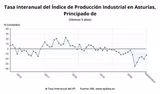 El Índice de Producción Industrial (IPI) ha caído un 12,7 por ciento en el mes de septiembre en comparación con el mismo periodo del año pasado en el Principado de Asturias, según información publicada este viernes por el Instituto Nacional de Estadística (INE).