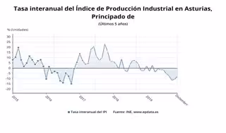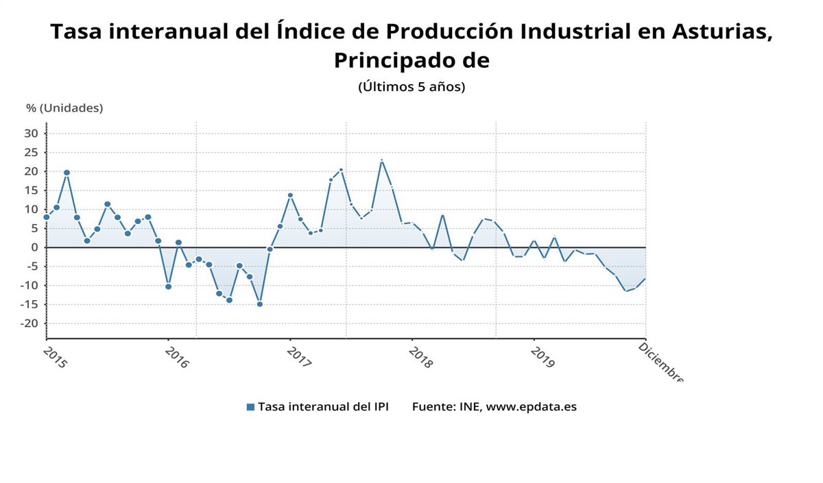 La tasa de producción industrial en el Principado de Asturias ha caído un 4,2% en el conjunto de 2019 respecto al año anterior, siendo la segunda comunidad autónoma que más cae, según ha informado este viernes el Instituto Nacional de Estadística (INE).