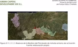 Imagen de la ubicación futura del parque eólico de Cheiriella junto a las Reservas de la Biosfera del Principado de Asturias que se verían afectadas. - GREEN CAPITAL DEVELOPMENT XIX SL