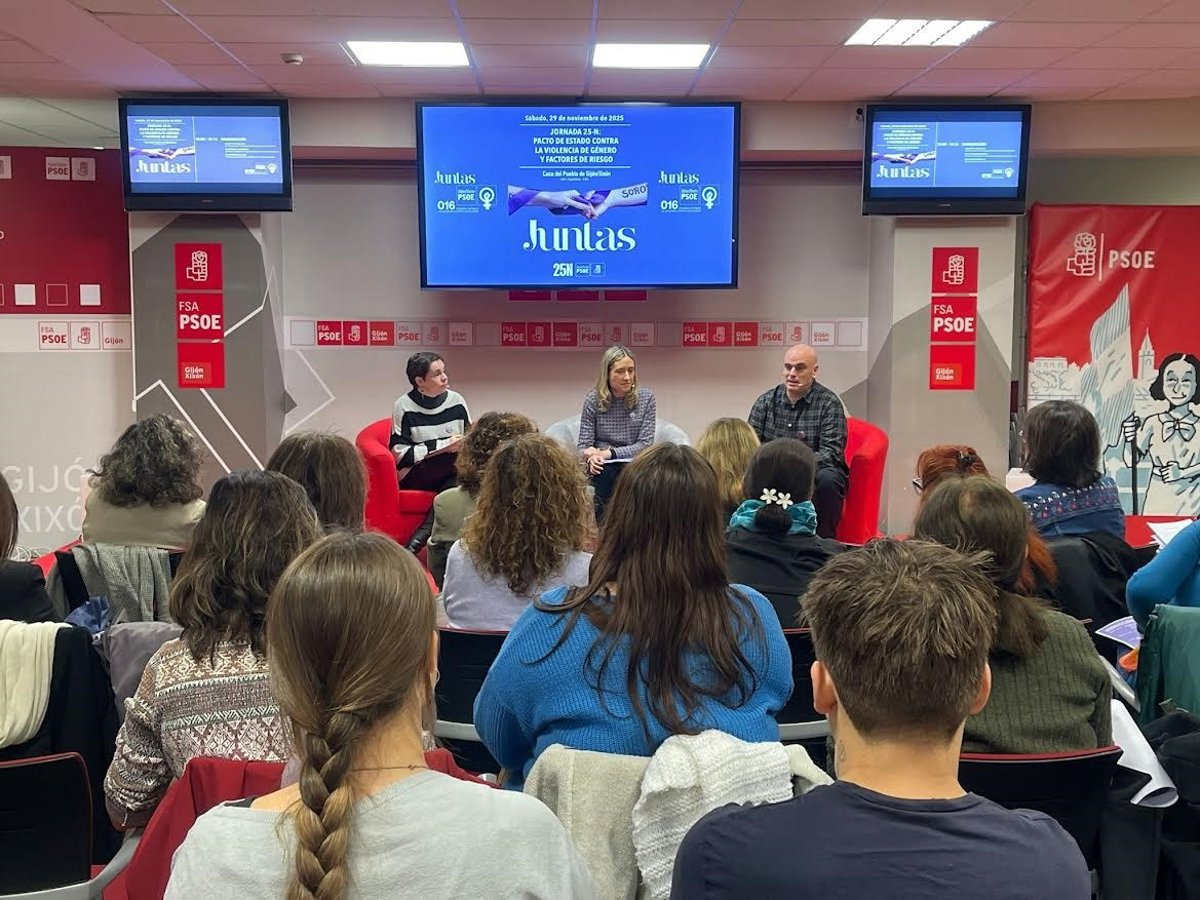 La Agrupación Municipal Socialista de Gijón ha acogido este sábado la jornada '25N: Pacto de Estado contra la Violencia de Género y Factores de Riesgo' en la que han participado entidades del tercer sector.