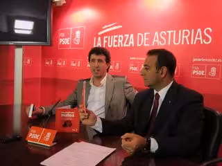 El secretario de organización de la FSA-PSOE, Jesús Gutiérrez y el diputado socialista, Fernando Lastra, han presentado este martes en rueda de prensa un folleto en el que bajo el título 'Desmontando Mitos. La verdad sobre el esfuerzo y las inversiones socialistas en Asturias', recogen "datos e información veraz" para explicar que han sido los Gobiernos del PSOE los que "mejor se han portado con la región".