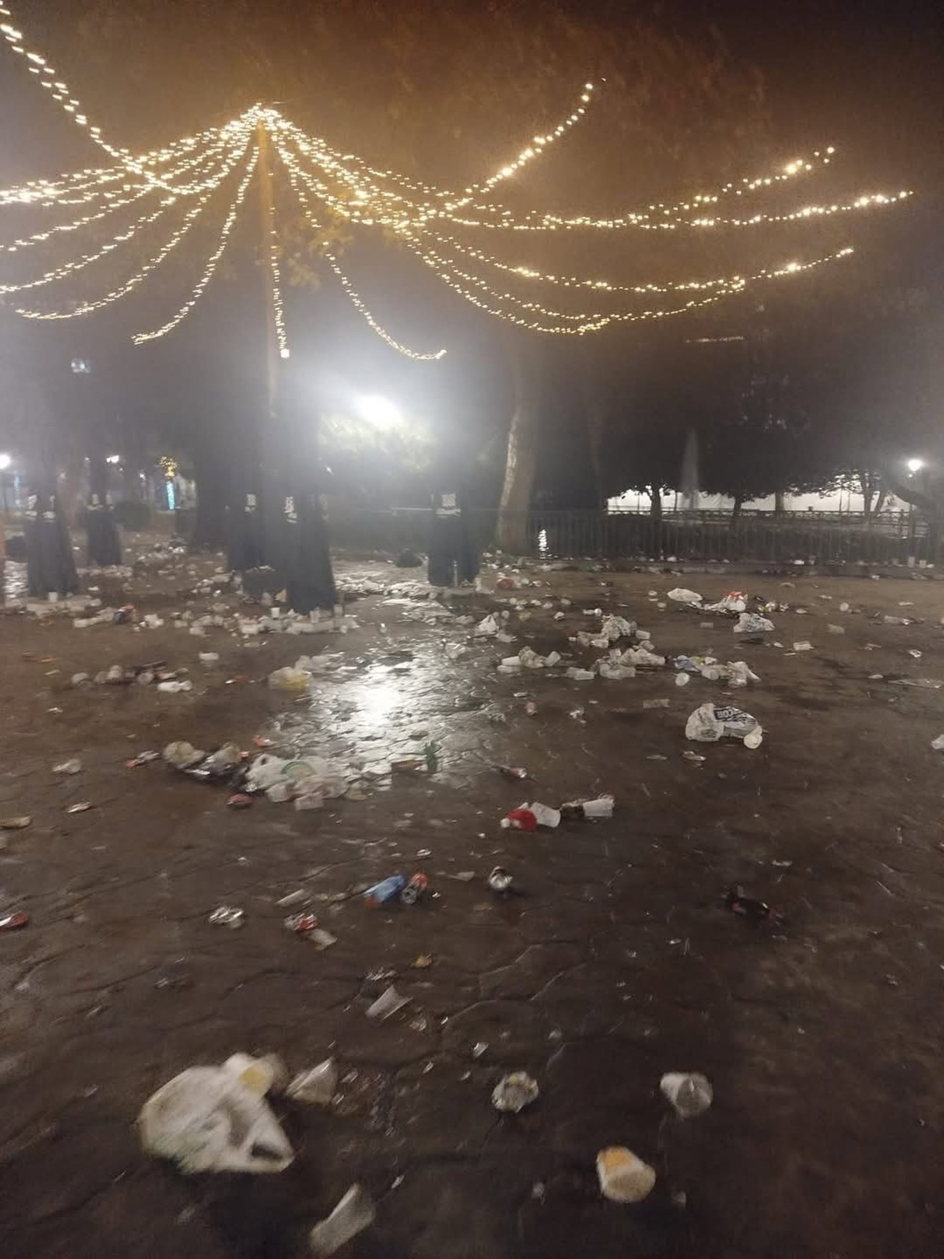 Residuos generados por un botellón en el Campo San Francisco durante navidad. - PSOE DE OVIEDO