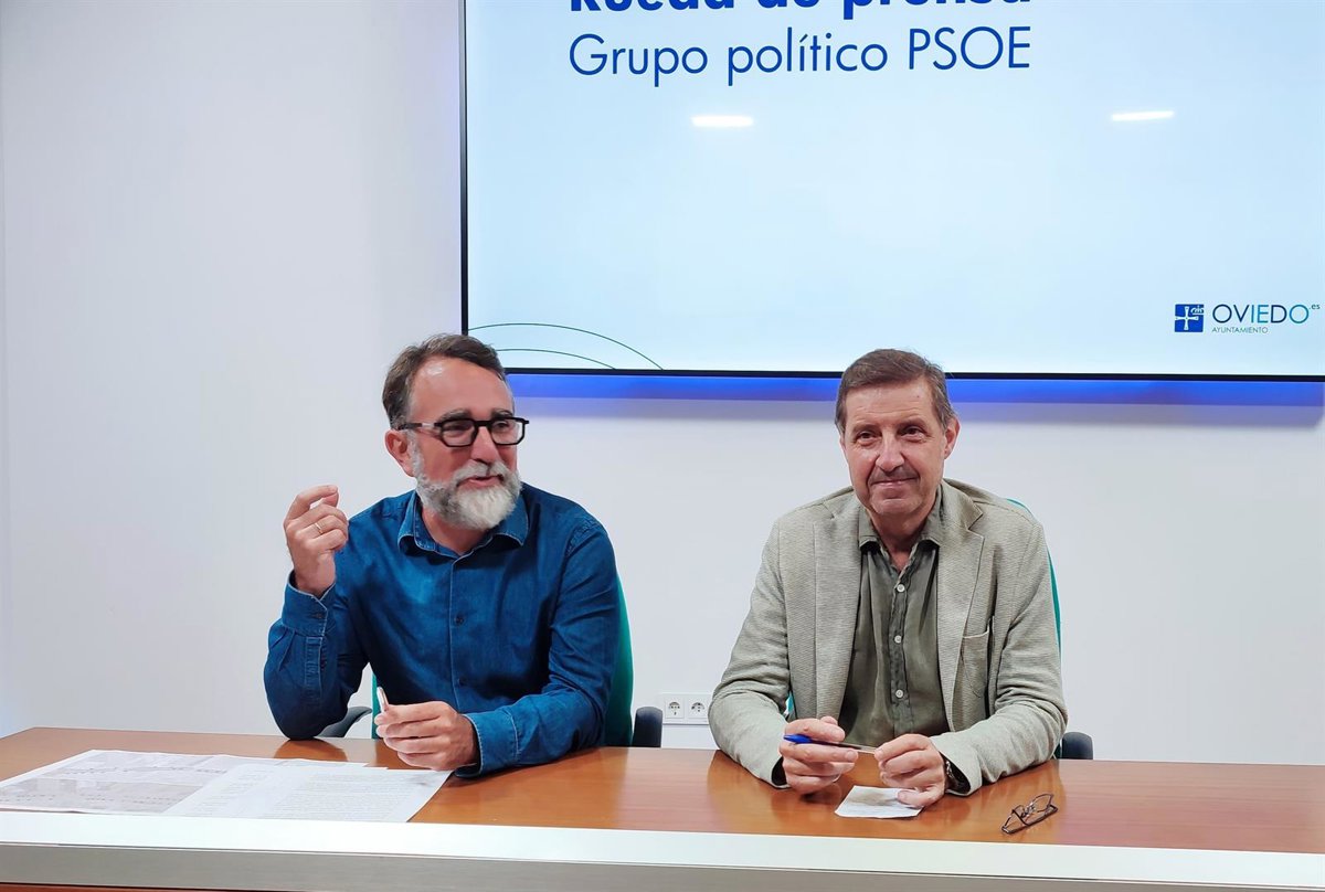 Rueda de prensa del portavoz del PSOE en el Ayuntamiento de Oviedo, Carlos Fernández Llaneza, y el concejal Juan Álvarez. - EUROPA PRESS