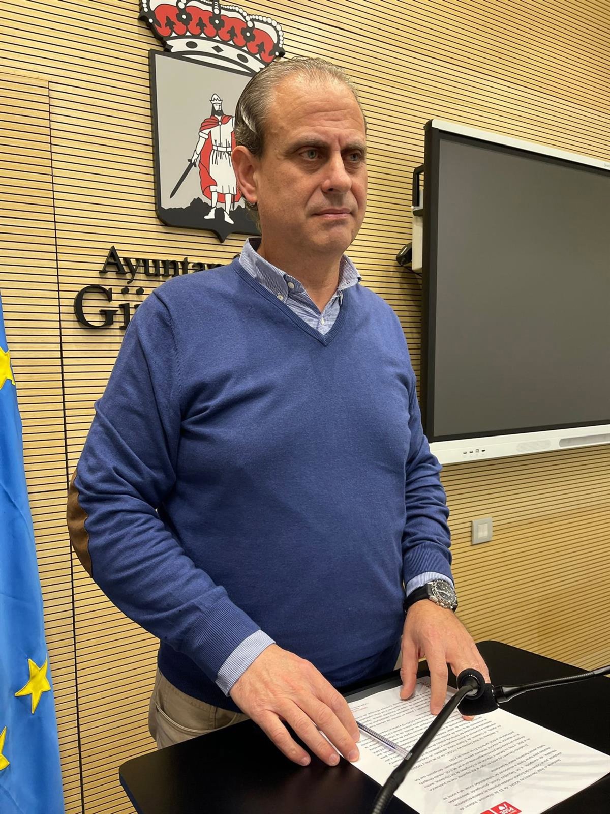 El concejal del Grupo Municipal Socialista en el Ayuntamiento de Gijón Tino Vaquero, en rueda de prensa en el Consistorio gijonés. - PSOE GIJÓN