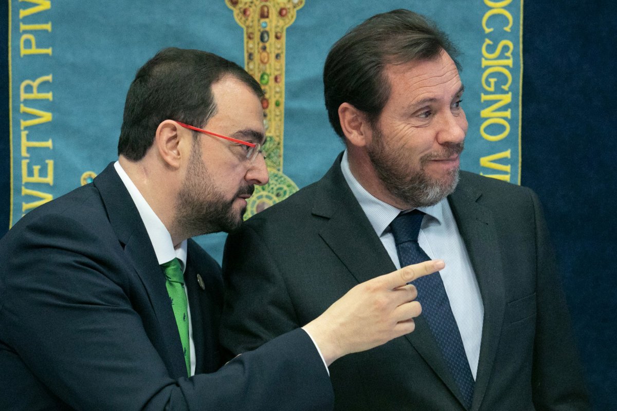 Archivo - El presidente del Principado, Adrián Barbón y el Ministro de Transportes y Movilidad Sostenible, Óscar Puente, en una imagen de archivo - JORGE PETEIRO - Archivo
