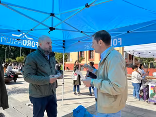 Pumares ha realizado estas manifestaciones junto al candidato municipal de Foro Laviana, Roberto Vázquez Coto, durante un recorrido por el mercado semanal de Pola de Laviana en un reparto de información electoral.