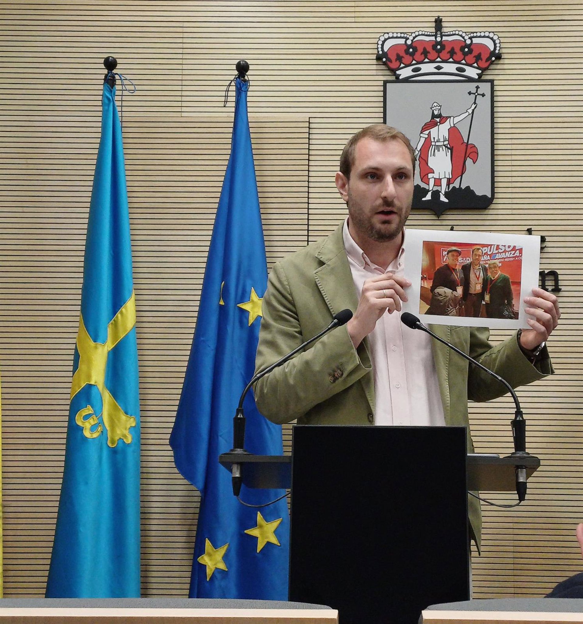 Este ha apuntado que la sociedad asturiana requiere que el PSOE esté a la altura y no se comporten como simples "fans", a lo que ha mostrado una segunda foto, de fecha del pasado enero, en la que se puede ver al secretario general de los socialistas gijoneses y a su portavoz municipal, Monchu García y Luis Manuel Flórez 'Floro', con el ministro.