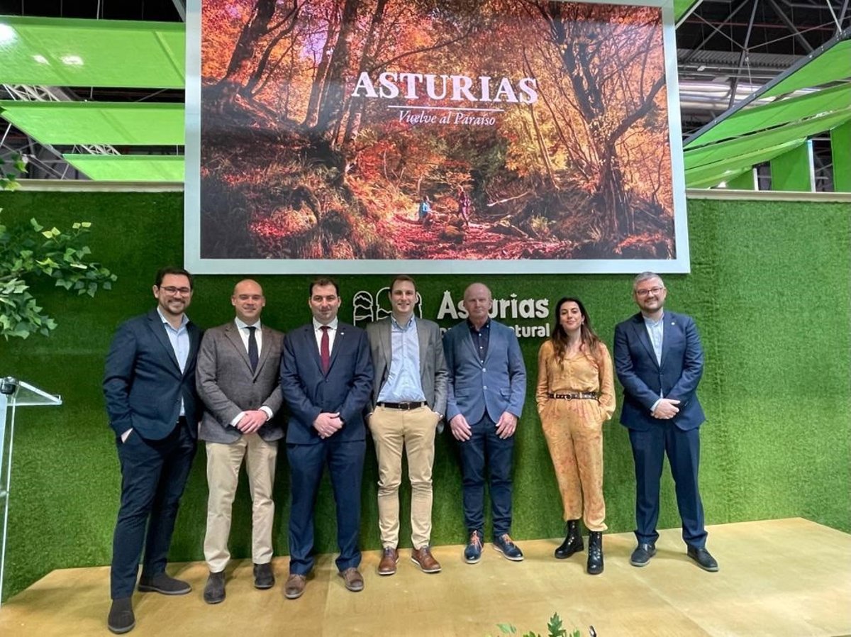 Adrián Pumares, en el centro, durante su visita Fitur. - FORO ASTURIAS.