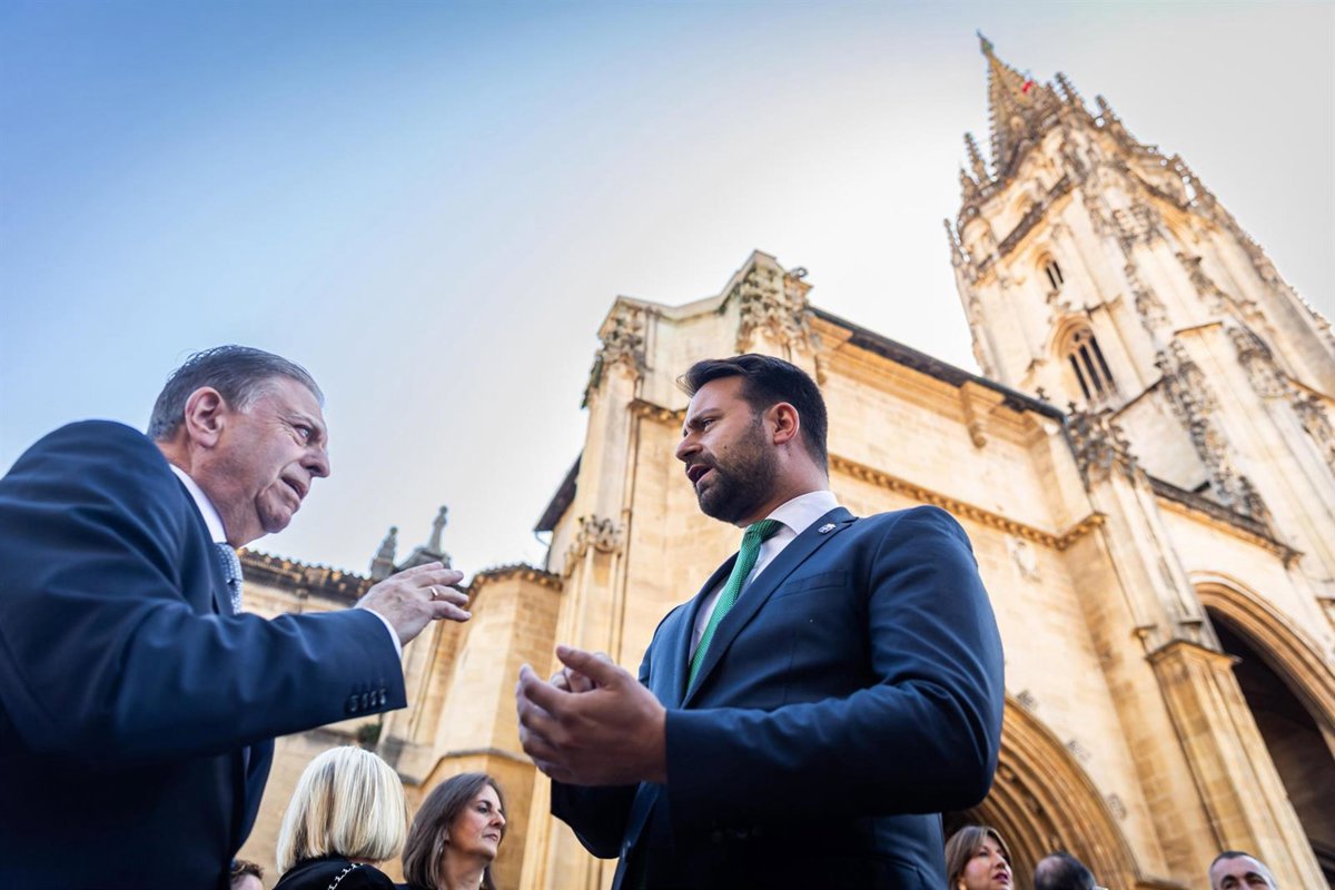 El alcalde de Oviedo, Alfredo Canteli junto al presidente del PP en Asturias, Álvaro Queipo momentos antes de asistir a la Misa de San Mateo, en Oviedo. - PP