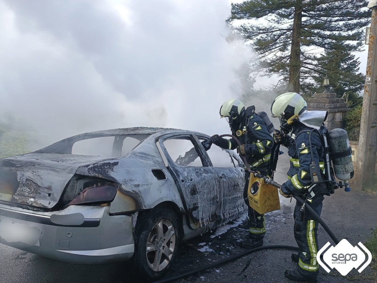 Bomberos del Servicio de Emergencias del Principado de Asturias (SEPA) han sofocado el incendio declarado en un turismo que se quemó en el área recreativa de Monteagudo, en Llanera.