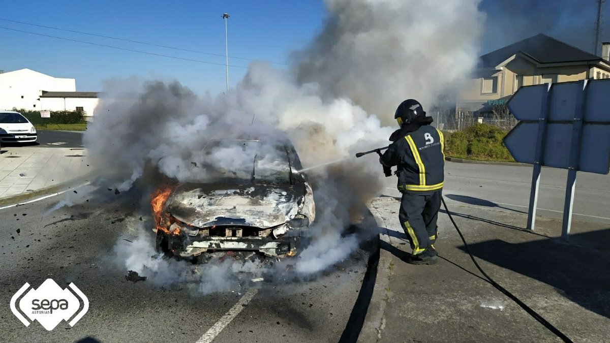 Bomberos del Servicio de Emergencias del Principado de Asturias (SEPA) han extinguido el incendio declarado en un turismo en las inmediaciones del hospital de Jarrio, en Coaña.