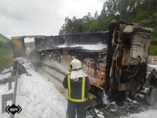 Bomberos del Servicio de Emergencias del Principado de Asturias (SEPA) han extinguido el fuego dclarado en el remolque de un camión que transportaba leche en la A-8, a la altura de Ribadesella en sentido Cantabria.