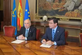 El presidente de la Junta General del Principado de Asturias (JGPA), Pedro Sanjurjo, y el rector de la Universidad de Oviedo, Vicente Gotor, han firmado este lunes un protocolo general de colaboración entre ambas instituciones que contempla que 15 alumnos universitarios realicen prácticas en la institución el próximo curso. Las prácticas no serán remuneradas.