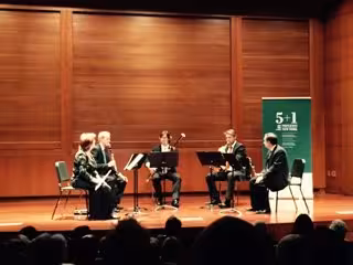 El programa cultural 5 + 1 in Princeton and New York no pudo comenzar mejor para el Quinteto VentArt-OSPA. El prestigioso Instituto de Estudios Avanzados (IAS) ofreció este domingo una calurosa acogida a la formación asturiana en su debut en el Ciclo de Cámara organizado por la Princeton Symphony Orchestra. El Wolfensohn Hall, sala de conciertos del IAS, se llenó para escuchar el programa con que el quinteto de la OSPA mostró la influencia española en la historia de la música.
