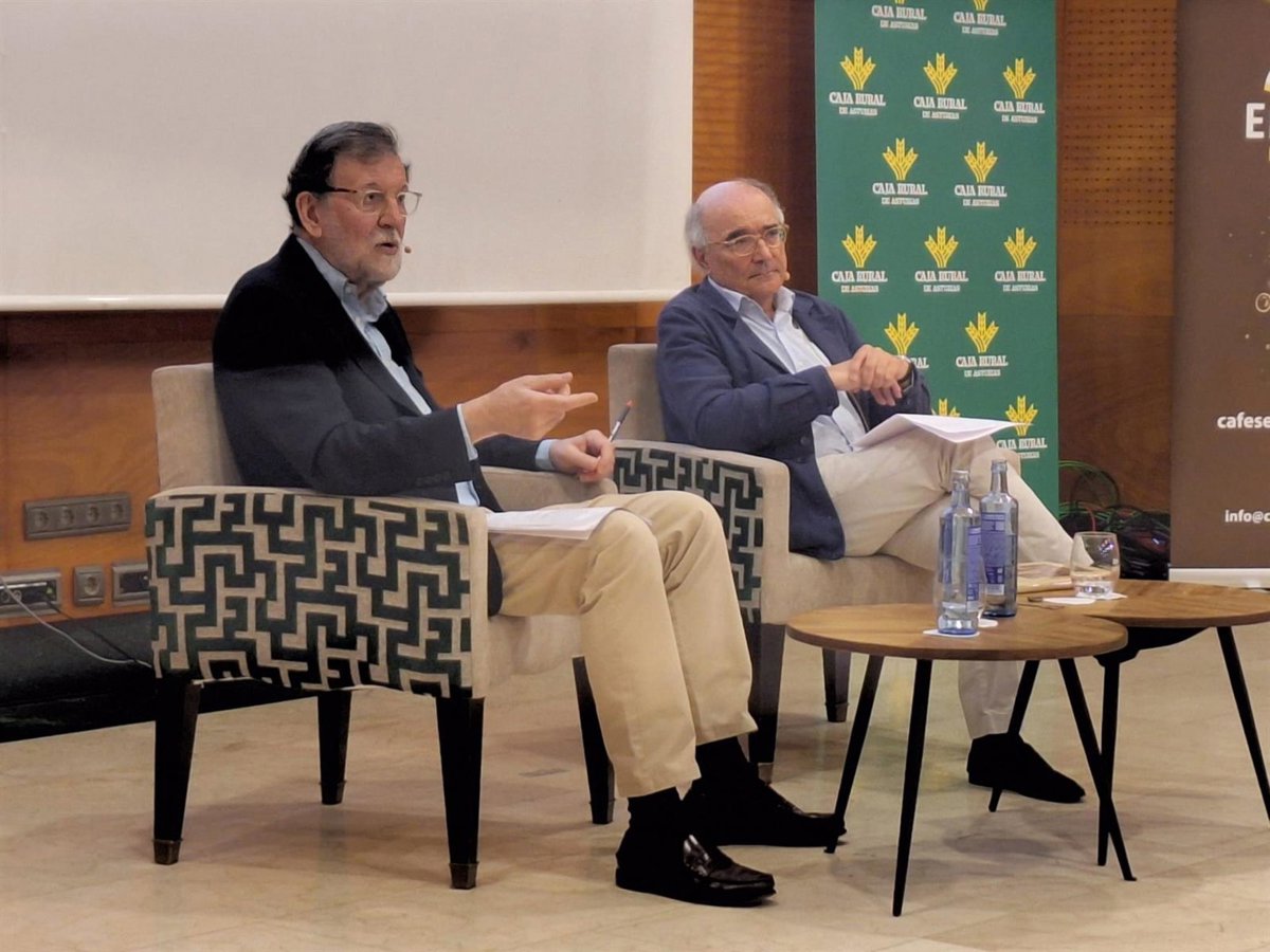 El ex presidente del Gobierno, Mariano Rajoy, interviene en los Cursos de La Granda, en Avilés. Junto a él el Director de los Cursos, Benigno Pendás. - EUROPA PRESS