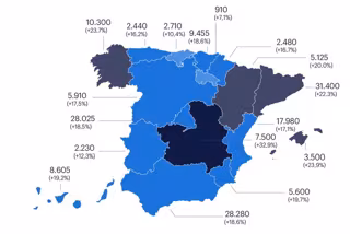 Por otro lado, los incrementos más moderados se registran en La Rioja, con un crecimiento del 7,1% (910 contratos), Cantabria con 2.710 firmas (+10,4%) y Extremadura con 2.230 contratos (+12,3%).