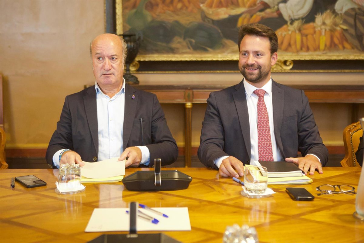 El diputado regional del PP Luis Venta y el presidente del PP asturiano y portavoz parlamentario, Álvaro Queipo, durante la Junta de Portavoces de este miércoles. - PP ASTURIAS